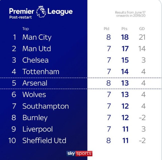 How The Premier League Table Would Look Based On Every Club S Home Form In The Last Eight Games Everton In Drop Zone