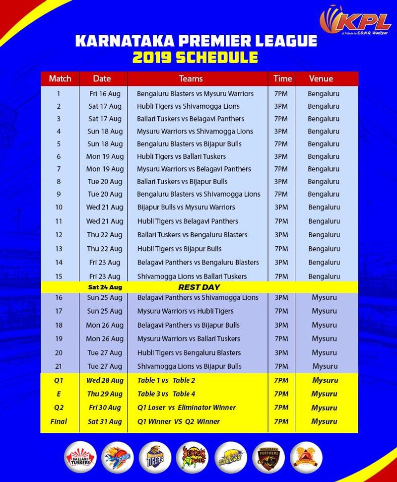 Karnataka Premier League Kpl 2019 Full Schedule Teams Squad Venue Tv Timings And Live Streaming Information Mykhel