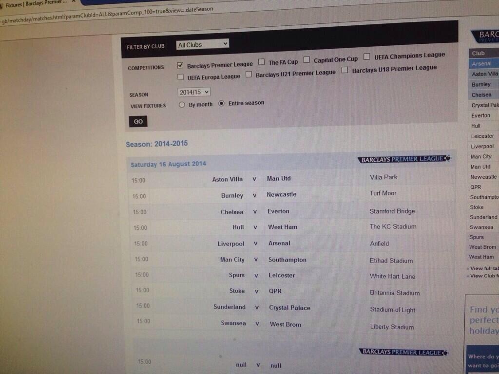 Premier League Fixtures Leaked Document Online Liverpool V West Ham Arsenal V Brighton Football Sport Express Co Uk