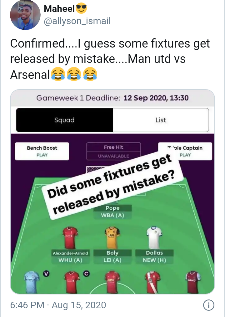 Picture Leaked Opening Day Epl Fixtures Arsenal To Face Liverpool Chelsea To Face Everton Soccersouls