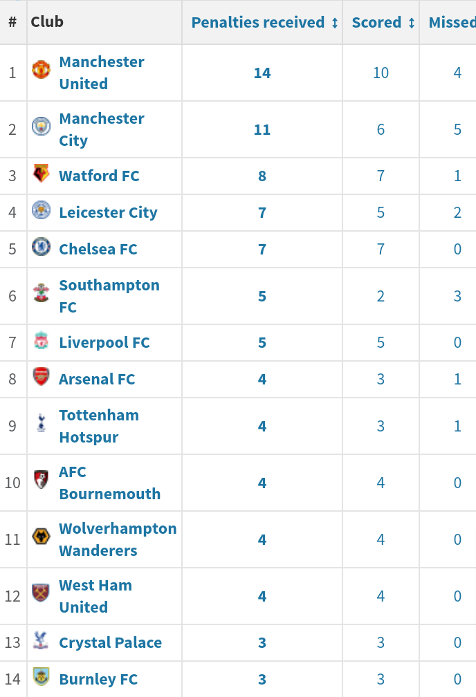 Optajoe On Twitter 14 Manchester United S Penalty At Leicester Is Their 14th Premier League Spot Kick Of The Season The Most One Side Has Ever Won In A Single Campaign In The
