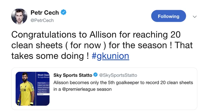 Chelsea Hero Cech Points Out Clean Sheet Record After Pl Praise Alisson All Football