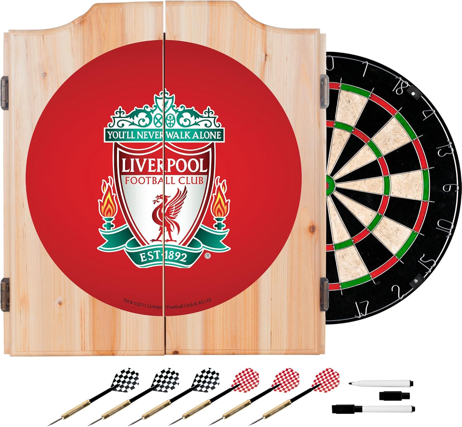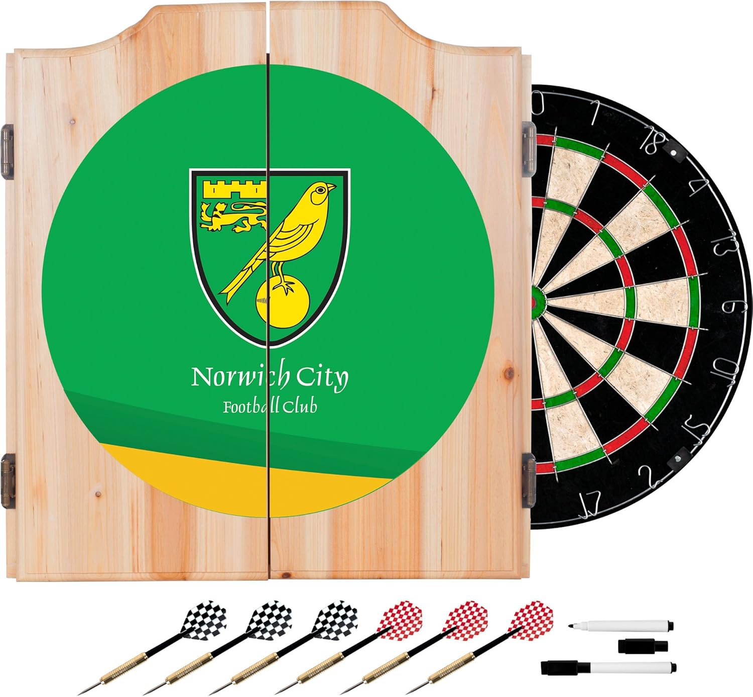 Trademark Gameroom Premier League Norwich City Dart Cabinet Includes Darts And Board Amazon Co Uk Sports Outdoors
