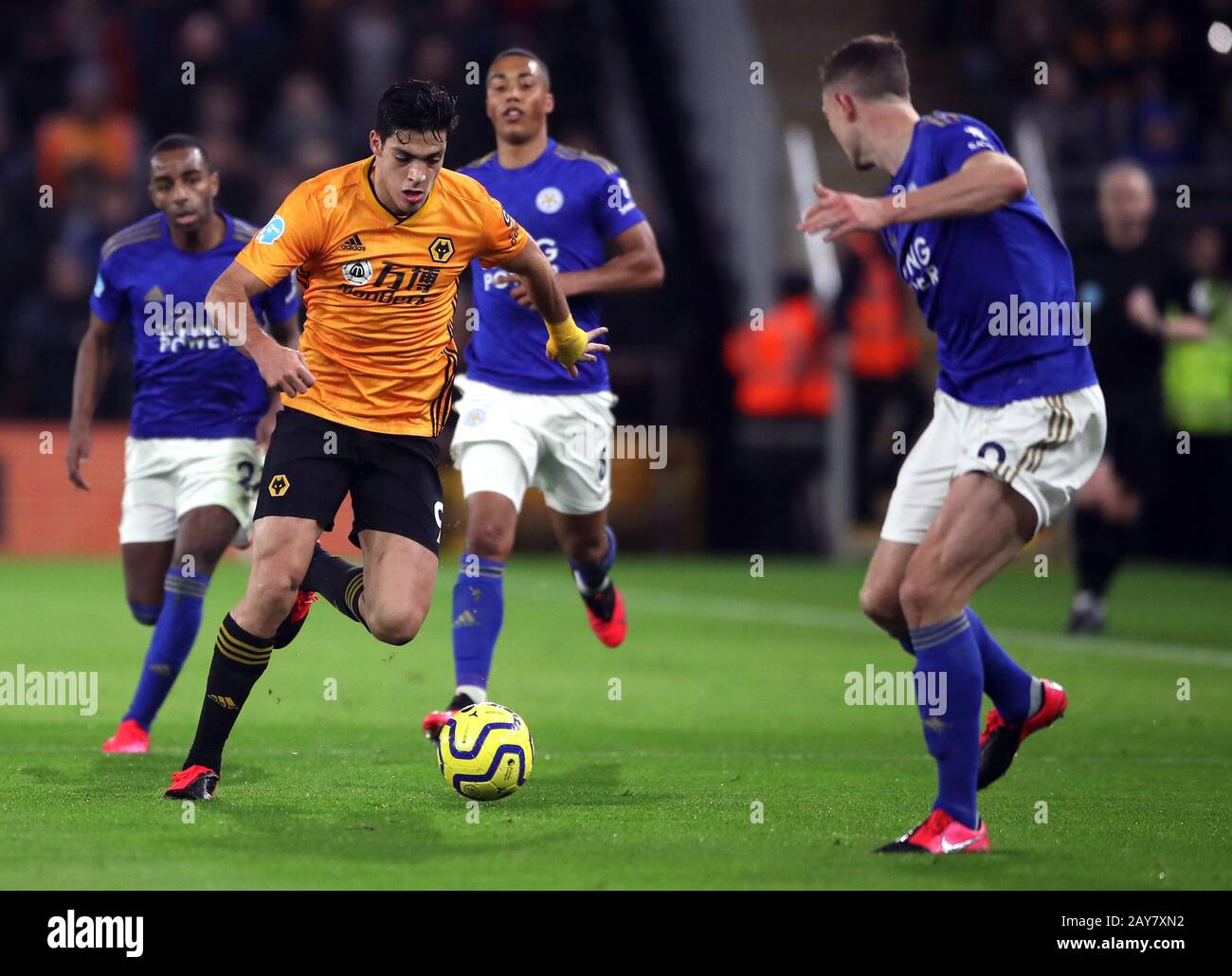 Wolverhampton Wanderers Raul Jimenez Left Runs At The Leicester City Defence During The Premier League Match At Molineux Wolverhampton Stock Photo Alamy