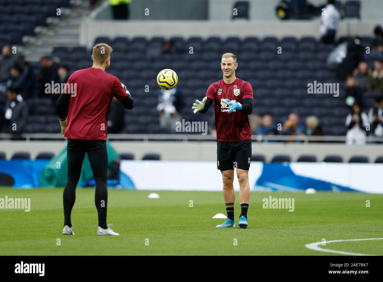 Tottenham Hotspur Stadium London Uk 7th Dec 2019 English Premier League Football Tottenham Hotspur Versus Burnley Goalkeeper Joe Hart Of Burnley During Pre Match Warm Up With Goalkeeper Bailey Peacock Farrell Of Burnley