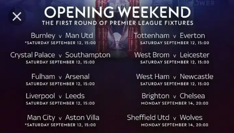 Epl Schedule 2020 21 Official List Of Fixtures For New Premier League Season Bleacher Report Latest News Videos And Highlights