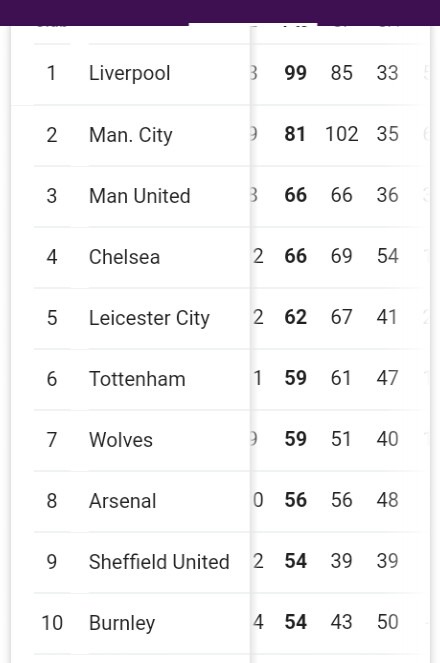 English Premier League Table Man City Vs Newcastle Brighton Vs Liverpool West Ham Vs Burnley Results Of Football League And Teams Wey Fit Qualify For Champions League Or Go Relegation Bbc