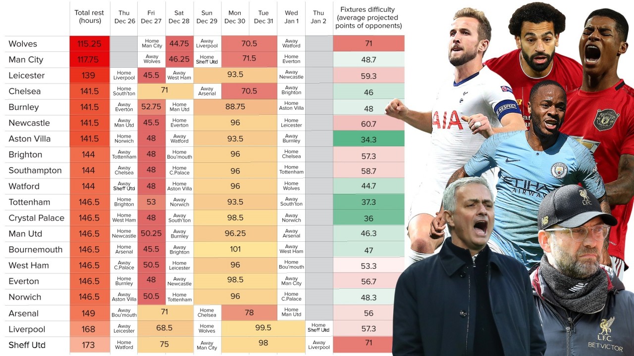 Festive Fixtures Which Premier League Teams Have A Rough Ride Over Christmas Sport News Racing Post