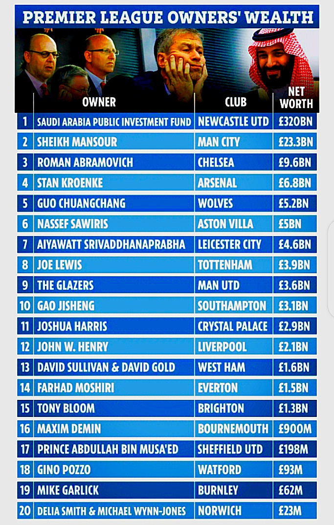Premier League S Richest Owners Revealed With Newcastle S Set For Top Spot After Takeover With 320bn Dwarfing Man Utd Sportlife News All About The World Of Sports