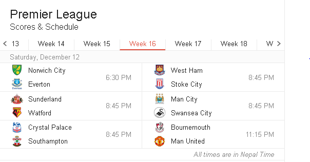 Latest Premier League Results For Week 16 2017 2018 Epl Scores English Premier League League