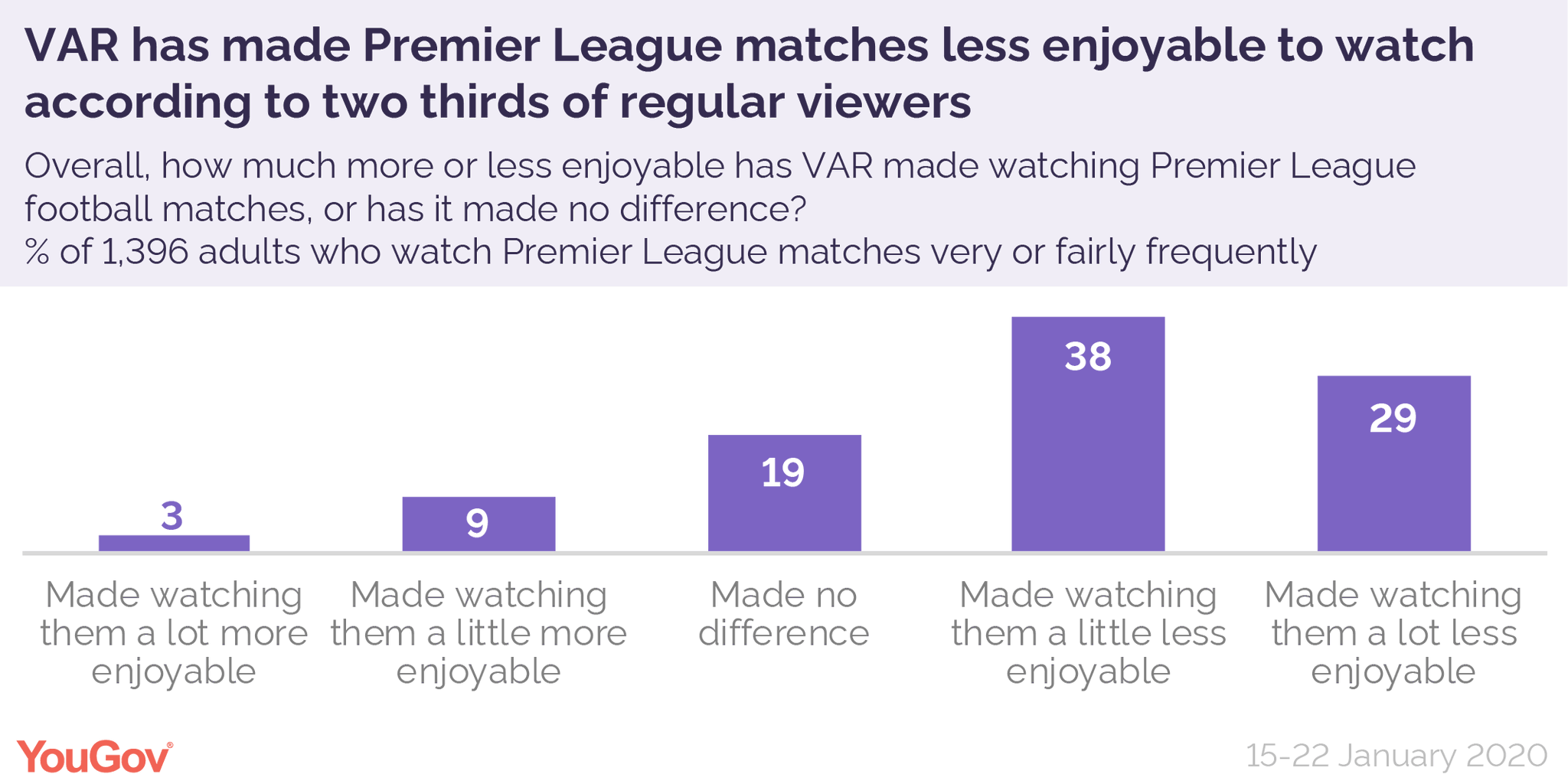 Yougov On Twitter Var Has Made Premier League Matches Less Enjoyable To Watch According To 67 Of Regular Viewers Just 13 Say It Has Improved The Viewing Experience Https T Co Qghq1qm61g Https T Co 3yxu9n2rem