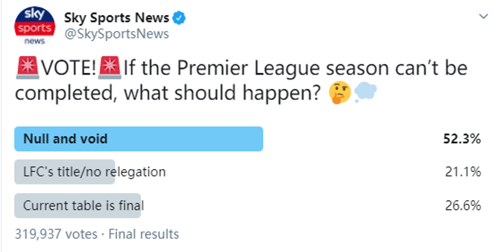 More Than Half Of Fans Think Pl Season Should Be Null And Void In Sky Vote All Football